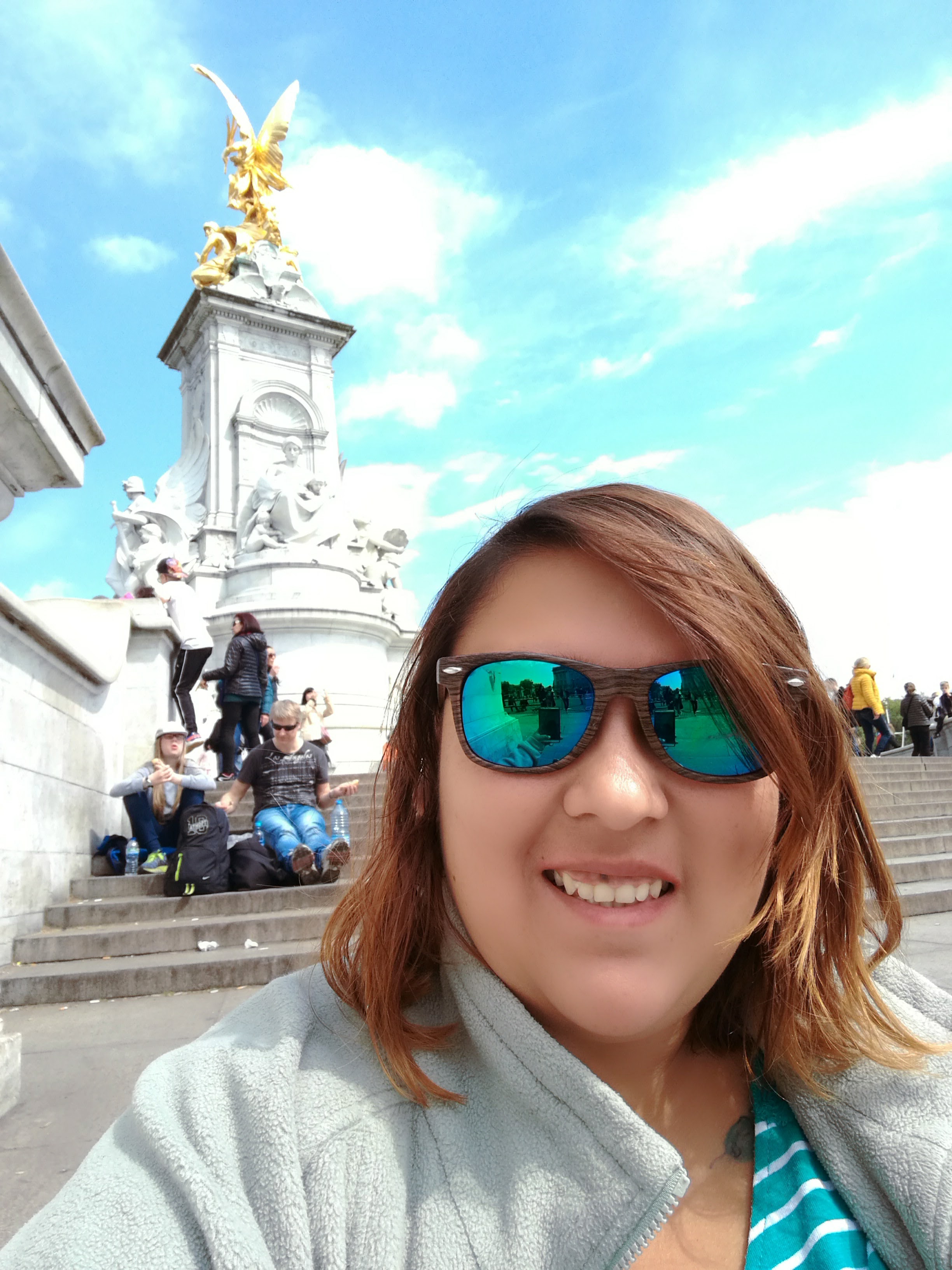 Tal como me pasó en Roma, justo al girar en una esquina, podes ver el palacio, bueno, la pared izquierda del palacio, luego la fuente y por supuesto, el montón de gente que esta ahí. Como había estado prevenida; al llegar al memorial de la reina Victoria, frente al palacio, me dediqué unos 10 o 15 minutos para absorber el hecho que yo ya esta ahi y de paso, comerme una gallatita que había comprado en el SoHo Coffee Co. La cantidad de personas que llegan es impresionante, el movimiento de la gente, la cantidad de selfie sticks que hay también. Por último, no me había dado cuenta de qué días y a qué horas era el cambio de guardia; que es el show que la mayoría de los turistas van a ver.