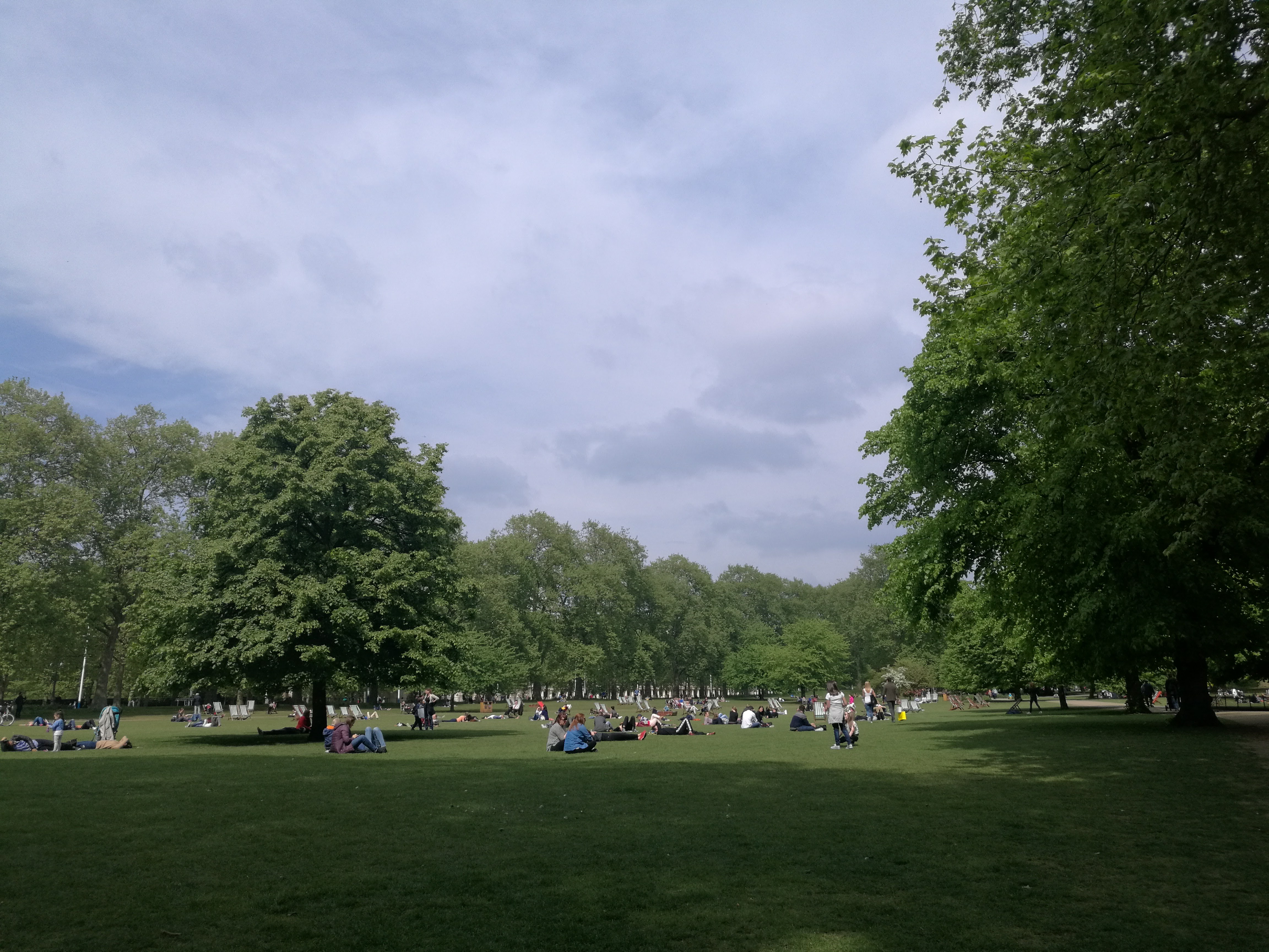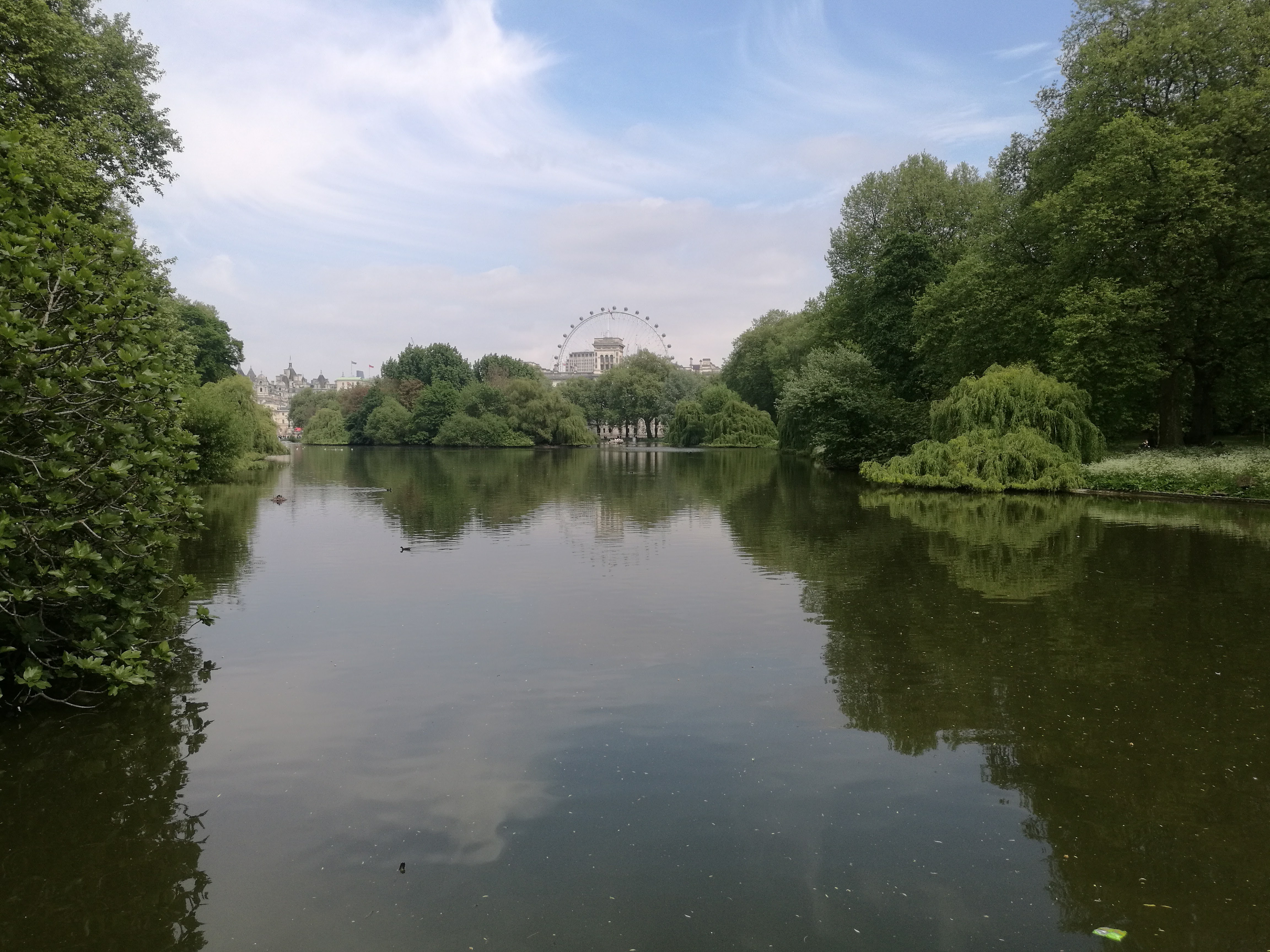 Luego de un par de fotos, unas panorámicas y unas selfies; decidí seguir caminando por ahi… Aún no tengo claro si la calle del «mall» estaba cerrada por ser domingo o por algo más, pero pude caminar por esa calle, no sin antes dar una vuelta por el parque St. James, porque realmente ya necesitaba un baño (£0.10 por usarlos y están super limpios ). Después de caminar un poco por el parque, aproveché para hacer lo mismo que todos los londinenses que andaban por ahí, estaba haciendo en la hora del almuerzo (asumo yo porque era medio día); tirarme un rato en la grama y dormir; Aproveche el sol que estaba haciendo para aplacar un poco el frío de final de la primavera.