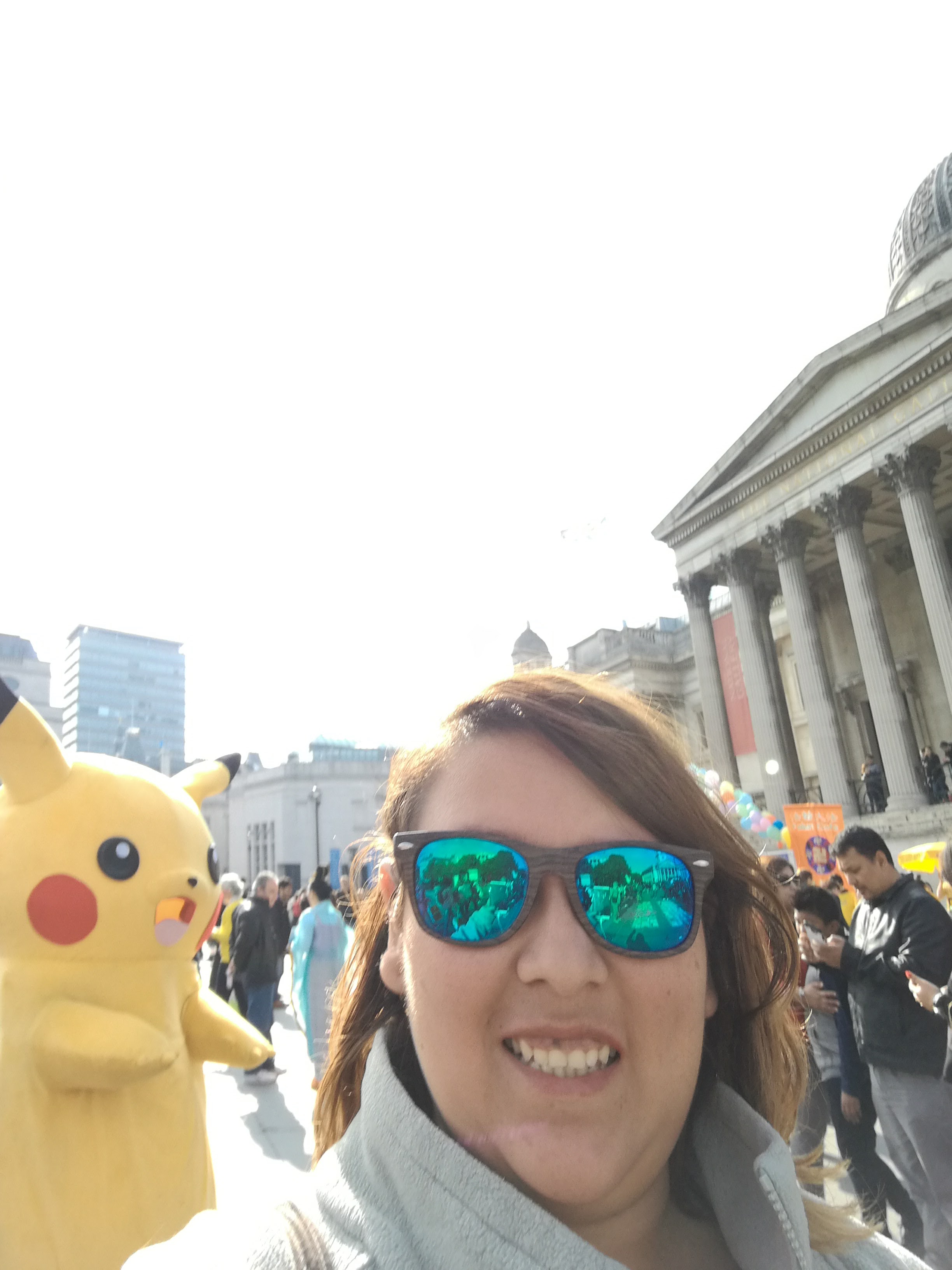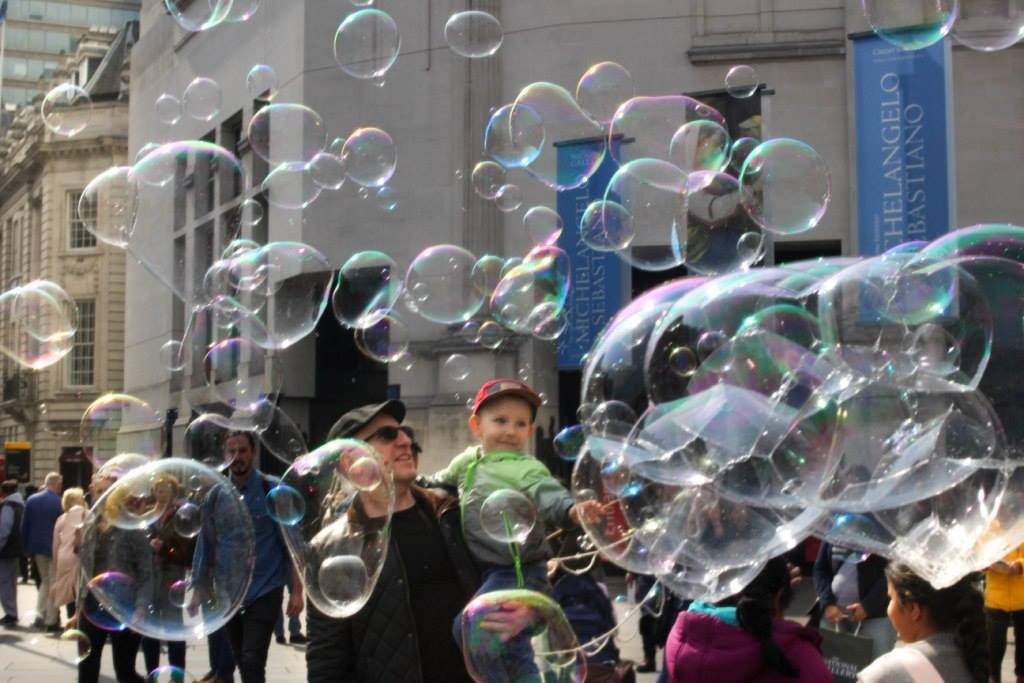 Al salir de mí llevé la sorpresa que tenía un pikachu afuera y también un gran espectáculo en la calle de burbujas para niños, y para que yo aprovechara a tomar fotos jeje. Después de ver eso y un show de un dragón chino, me fui a buscar otra parada de autobús (sí, me di cuenta que en ese día no paré más que 10 minutos sentada en el monumento a la Reina Victoria) ir a Covent Garden. Iba buscando Covent Garden, que es uno de los lugares que más quería ver en Londres, sobre todo porque es un lugar que aparece en la película «My Fair Lady» de Audrey Hepburn y Rex Harrison (llevada al teatro primero por Julie Andrews).