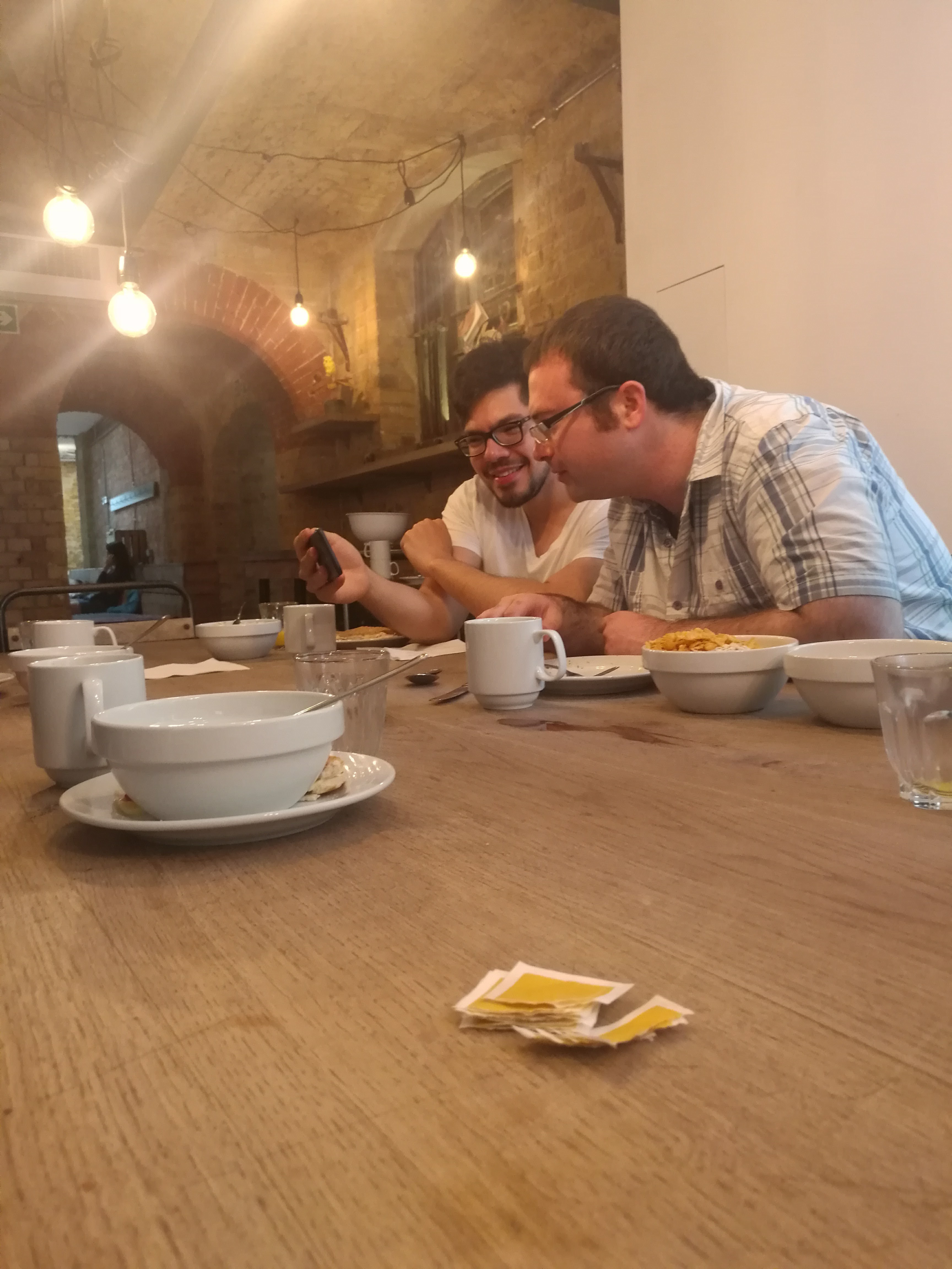 Me regresé al hotel, pero antes pasé comprando un 3x£5 en un Sainsbury’s local que consistía en un sandwich, un juguito y una ensalada de atún con coditos. Caminé el resto de cuadrás que hacían falta para el hotel, y me metí; aproveché a ver que la cama de abajo del mia (Camararote) estaba libre, así que decidí bajarme porque que incómodo estar subiendo y bajando y despertar a otra gente… Y también aproveché a dejar la ensalada de coditos en refrigeración orgánica (abrí la ventana y dejé el cumbito afuera toda la noche). Ahí conocí a dos de mis roomates; una era una chica de Texas que andaba en su backpacking trip through Europe y el otro era un chico que no recuerdo de dónde era y andaba en lo mismo, pero su siguiente parada era Ukrania para Eurovision.