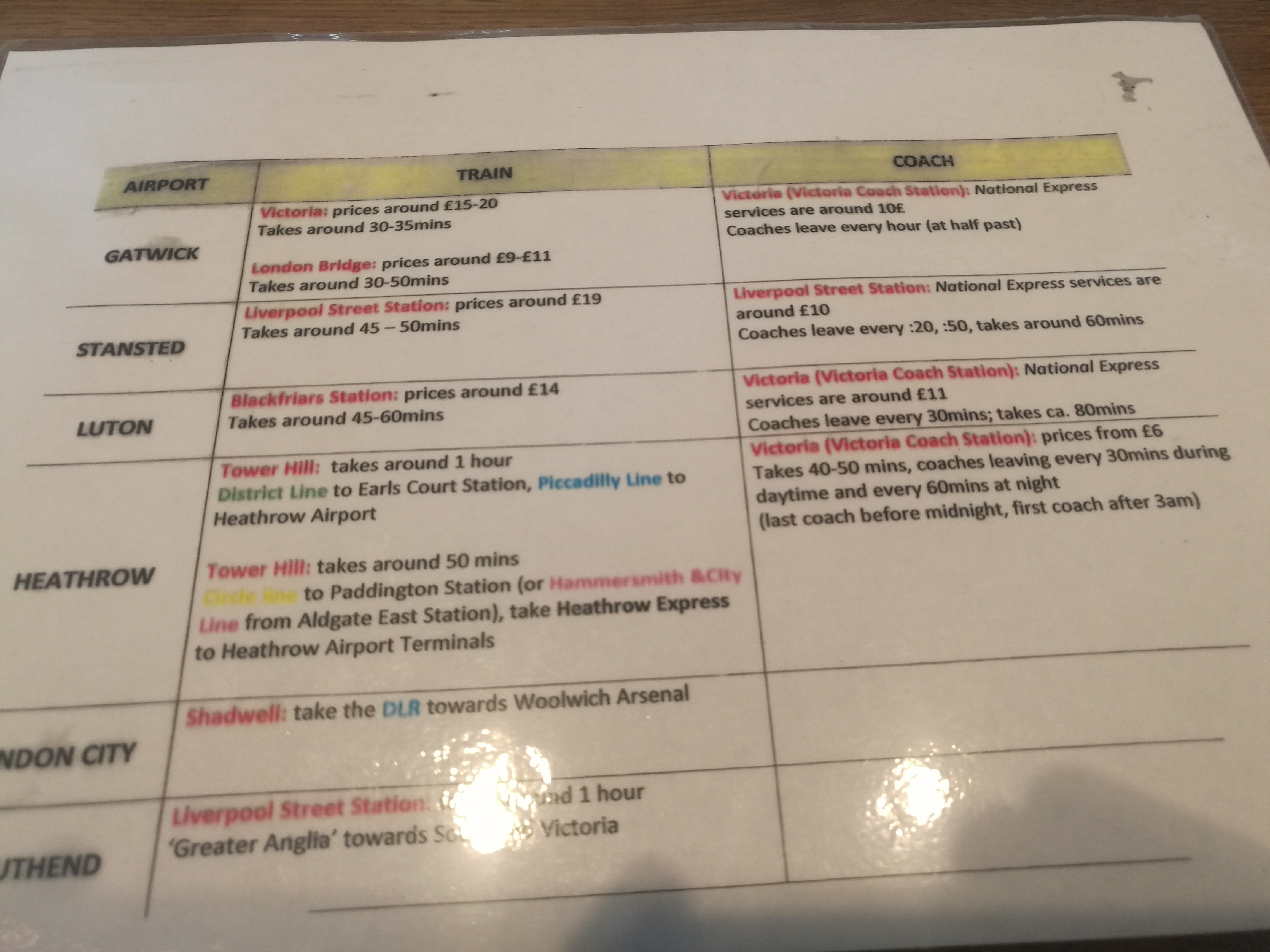 Finalmente, encontré la zona correcta y un empleado en el aeropuerto que me indicó un lugar donde estaba la plataforma 3 para ir a la ciudad, un lugar para ir a la línea del tren en Blackfriars para luego, tomar el underground y luego ir a Tower Hill, esa era Lo que me dejaron más cerca de mi hostal ( Wombats Hostel, super recomendado, de los más baratos $44 por noche y tienen otros en Budapest, Berlín, Munich, Venecia y Viena). Chris me había dado su tarjeta de Oyster para ocupar en el metro, pero asumió que el tiempo de estar sin usar, no pude ocupar la hora que llego a la estación, el kiosko de asistencia, por supuesto, estaba cerrado; me tocó comprar una tarjeta nueva como por $15 y con $10 de saldo.
