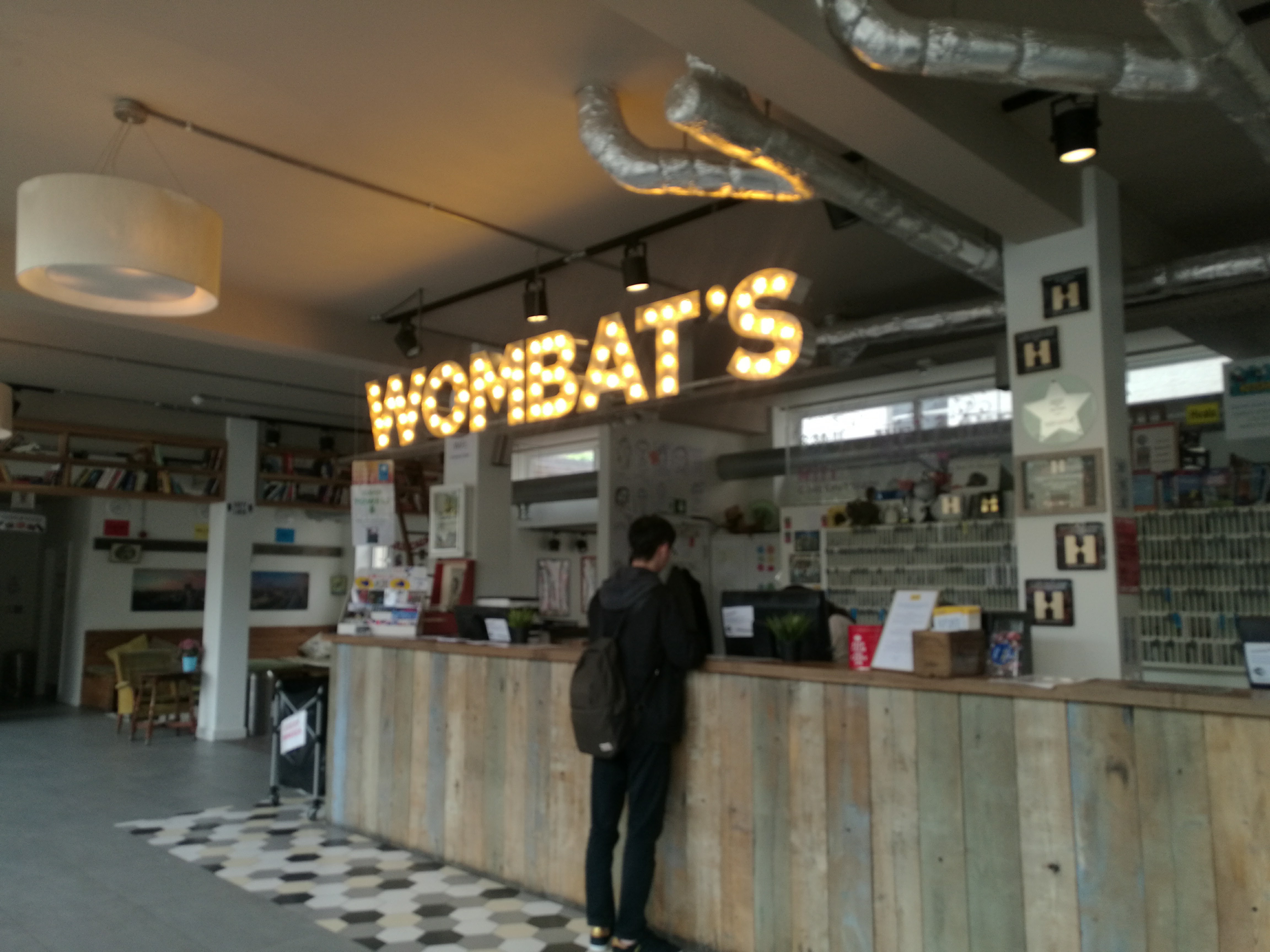 Conocí un par de personas, me recomendaron la parte freaky / cool de Londres, museos, bares a los tres días durante los 3 días que estás ahi. Me despedí y me fui a mi hostal. Wombats está en un edificio para uso moderno, de 3 o 4 pisos, además de un nivel subterráneo donde está el comedor para desayunar, el bar y la zona de juegos. Mi cuarto compartido, con otras 6 personas era en el segundo piso del edificio; La gran ventaja de esto era que había baño en el cuarto; Una diferencia de mi hostal en Dublín .