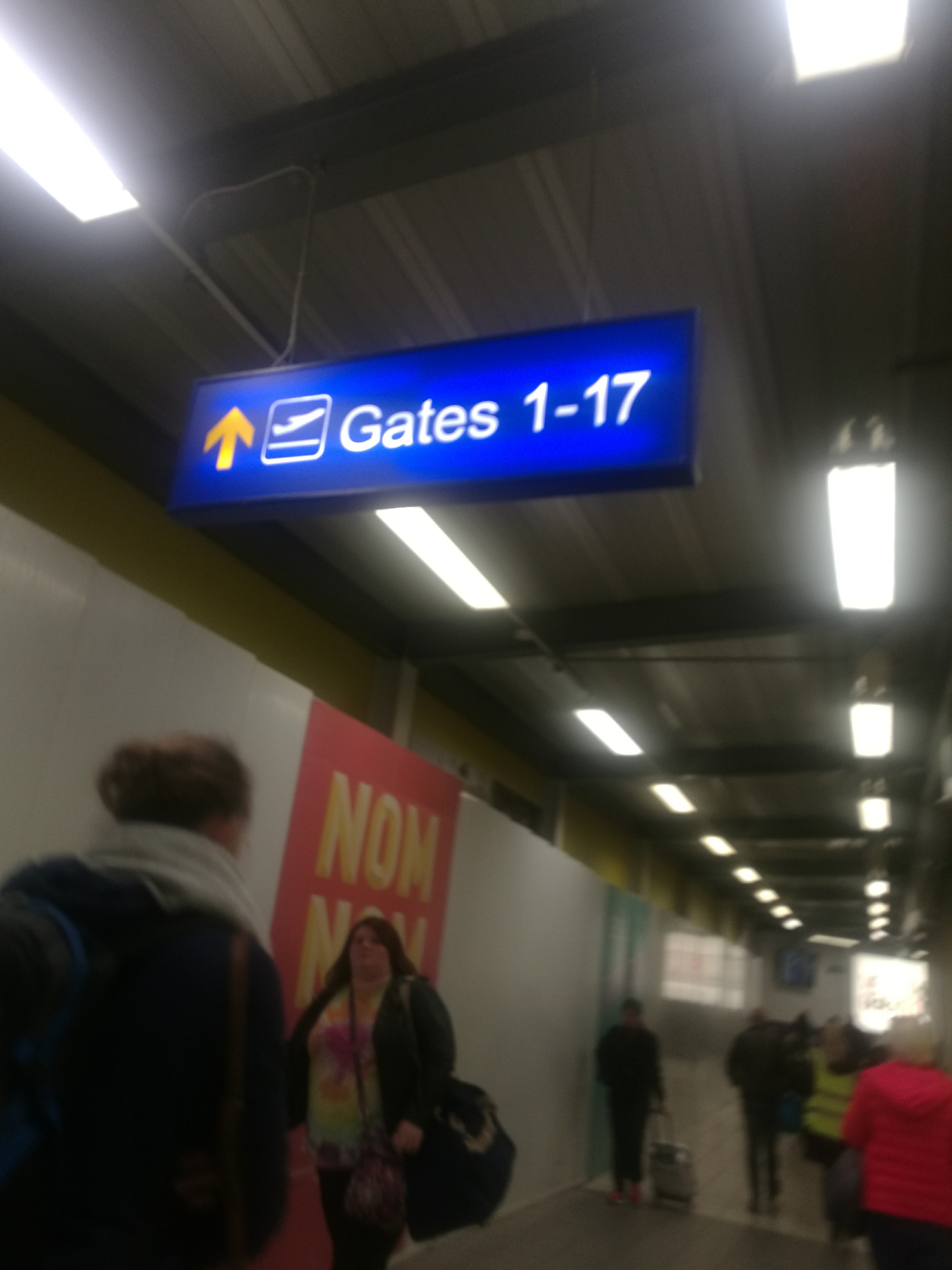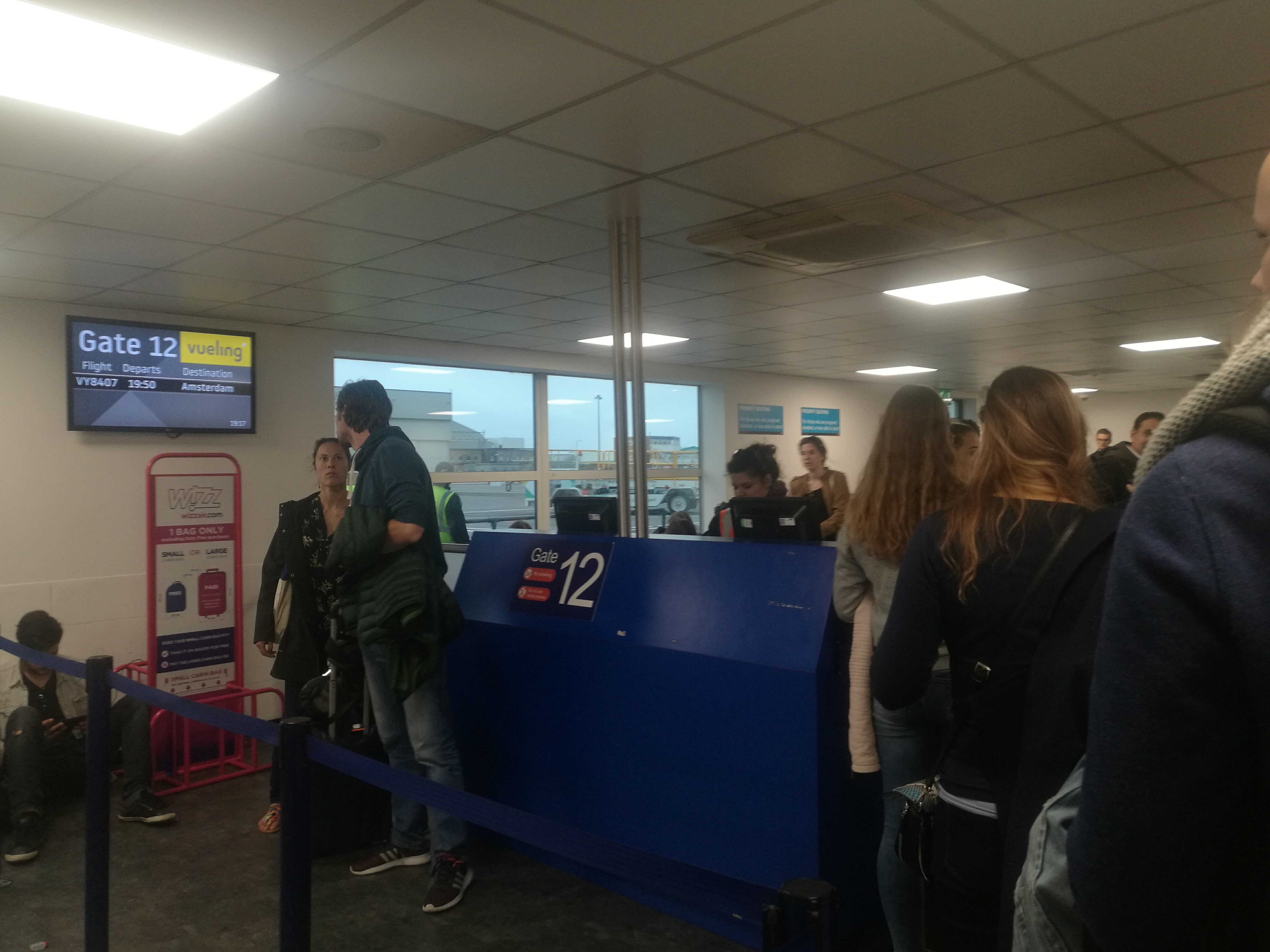 He corrído como nunca; cansada, harta de andar cargando mi maleta; menos mal tenía rodos también; pasé las salidas de las zonas 30-43; luego contré la bifurcación para encontrar de la 1 a la 16 y MENOS MAL, empezaba de la 16 a la 1 y no al revés. Logré llegar a la puerta 12; faltando TRES MINUTOS para comenzar a abordar el avión que me llevaría a Amsterdam. Por supuesto todos se me quedaron viendo como la loca que llegó tarde, pero hey, al menos no les jodí su vuelo atrasándolo…