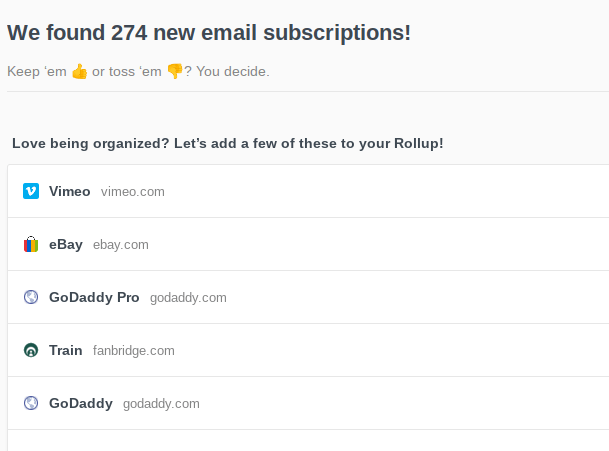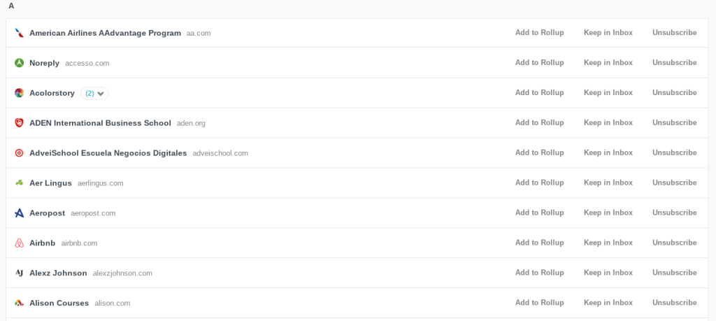 También puedes optar por sumar ciertas suscripciones aun servicio de «rollup» que es un servicio de unroll.me que te da el resumen de las que tu decidas poner en esa lista. Recuerda que cuando desees puedes borrar tu cuenta, pero también asegúrate de quitar los permisos desde tu cuenta de correo (la clave de app en gmail por ejemplo).