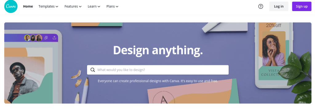 No confundir con CanvaS, como a mi me pasa. Este recurso es perfecto para los que no tienen programas de edición como la suite de Adobe pero necesitan hacer un diseño. Una de las grandes ventajas es que tiene las medidas exáctas para diferentes diseños como los de redes sociales: cover, post de instagram, stories, etc.