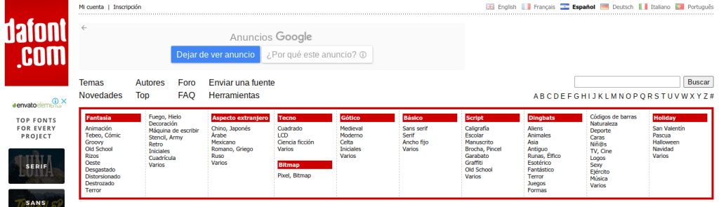 En palabras sencillas, DaFont es una librería de tipografías. Puedes encontrar una gran variedad de tipografías, desde las más tradicionales con serif o algunas otras mucho más creativas para explotar en diferentes diseños o artes. La descarga de estos recursos es gratuita también y puedes descargar la cantidad que desees. Al igual que Pexels y Freepik, si son para uso comercial solicitan dar crédito al autor del recurso que estés ocupando.
