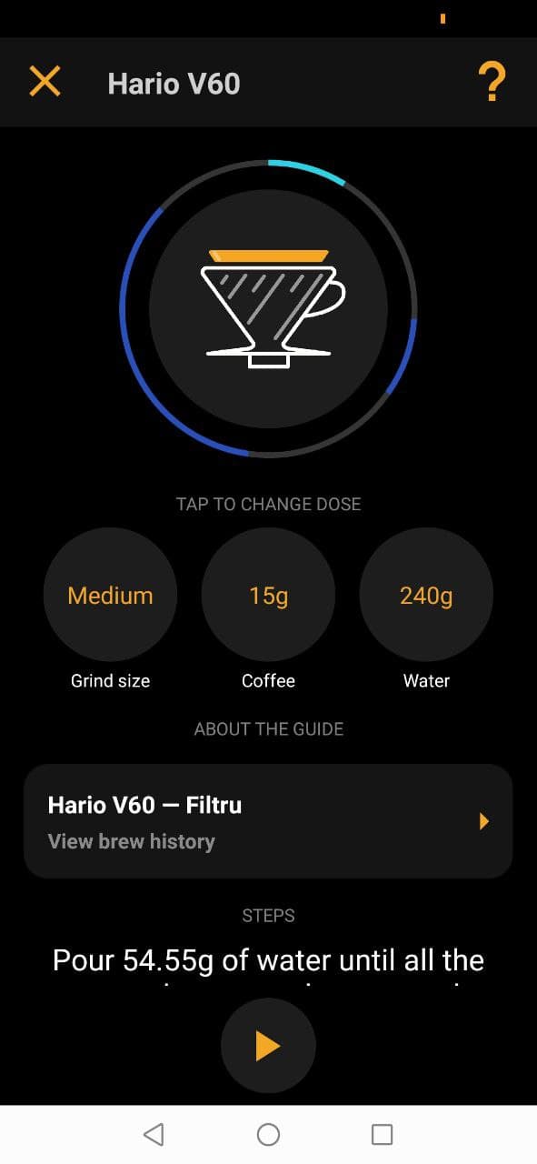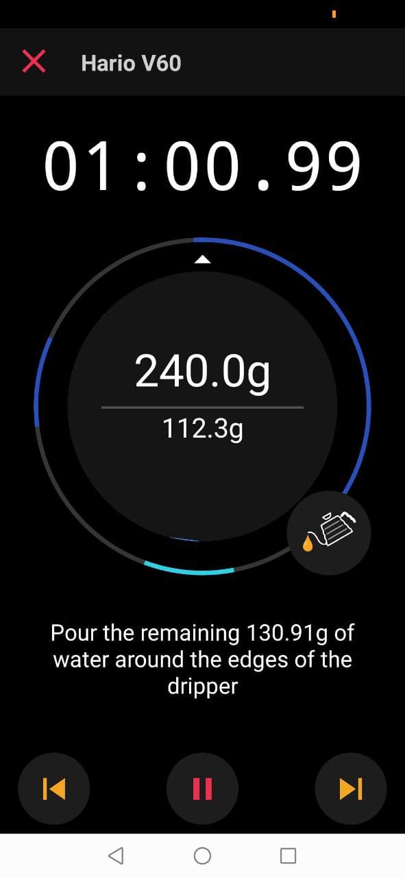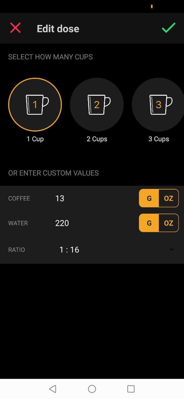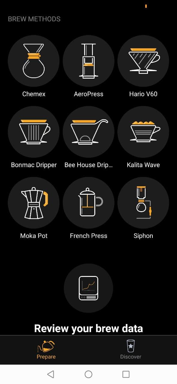 Lo que me gusta de esta app es que trae una variedad de opciones para los diferentes métodos así cada uno se va familiarizando con las proporciones que les gusta y pueden dejar su «receta» como favoritos y recurrir a ella cuando quieran hacer café. Además, que dependiendo de cuántos gramos ocupen cuando hacen su café, pueden ajustar las medidas y la relación de café/agua y al hacer el café, va mostrando el tiempo necesario para cada paso.