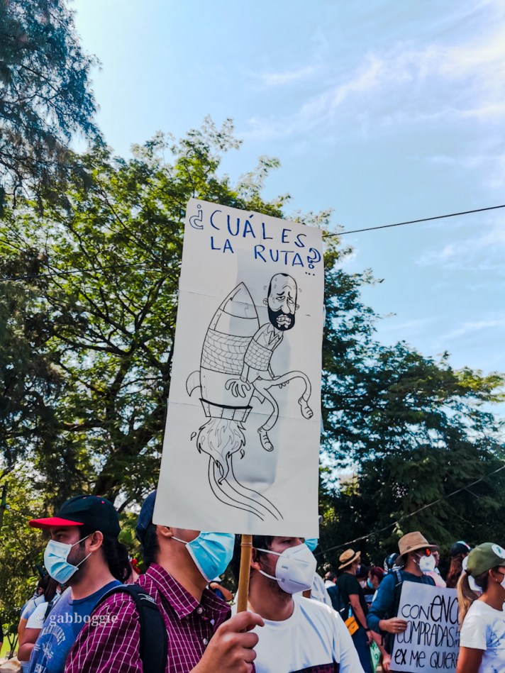 Estuvimos como 45 minutos sin movernos del parque hasta que comenzamos a avanzar y aunque se tuvieron un par de momentos tensos con automovilistas que querían cortar el paso de la marcha para cruzar a ciertas calles, todo avanzó con tranquilidad. A las 11:15am ya estabamos llegando a la plaza Cívica.