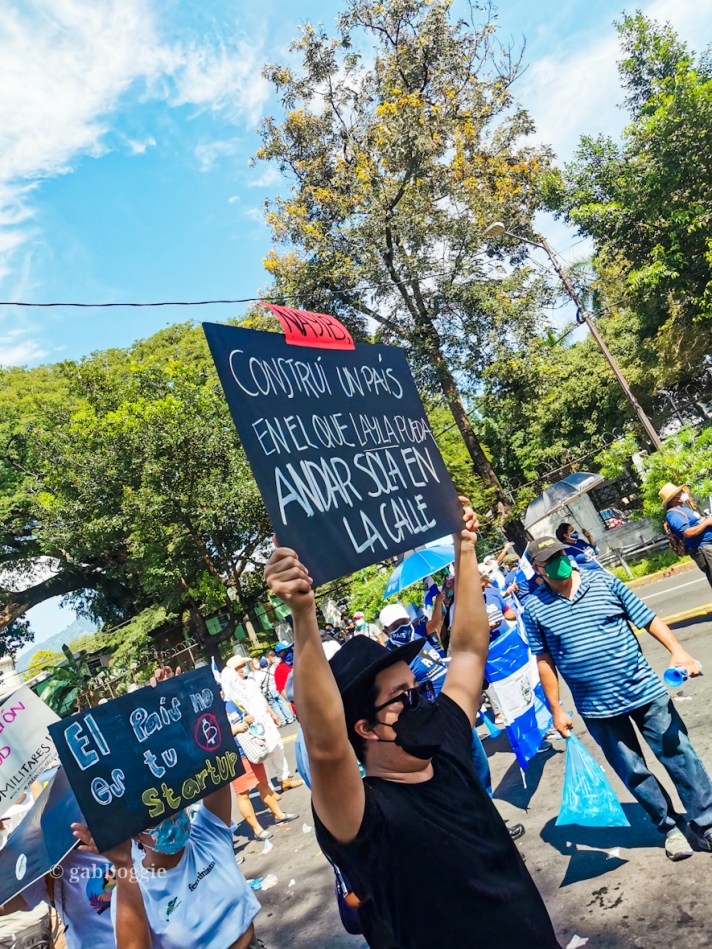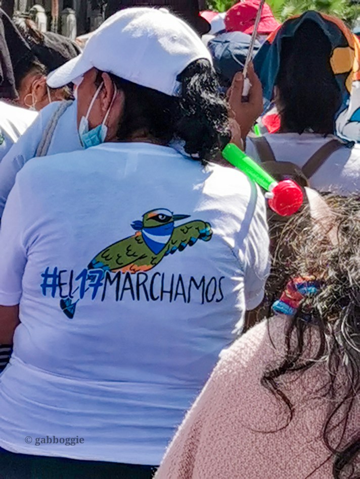 La marcha del 15 decidí no caminarla porque acababa de salir del hospital hacía un par de semanas, pero igual llegué a la plaza Morazán ese día y acompañé ahi. Ahora, para unirnos a la marcha de #El17Marchamos o #ElDomingoMarchamos, bajamos a dejar el carro al parqueo Morazán y subimos de regreso al parque Cuscatlán para unirnos al grupo de personas que empezaban el recorrido de 2.4 Kms. Cuando veníamos de regreso en un Uber, a eso de las 9:20am, las calles principales ya estaban cerradas y ya había comenzado a salir un grupo del parque.