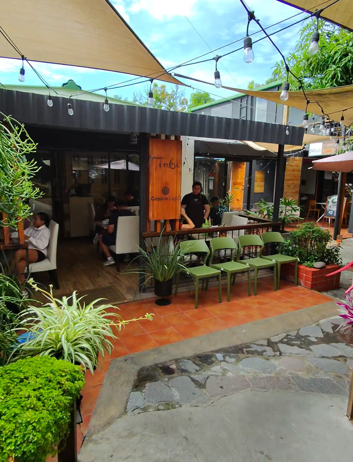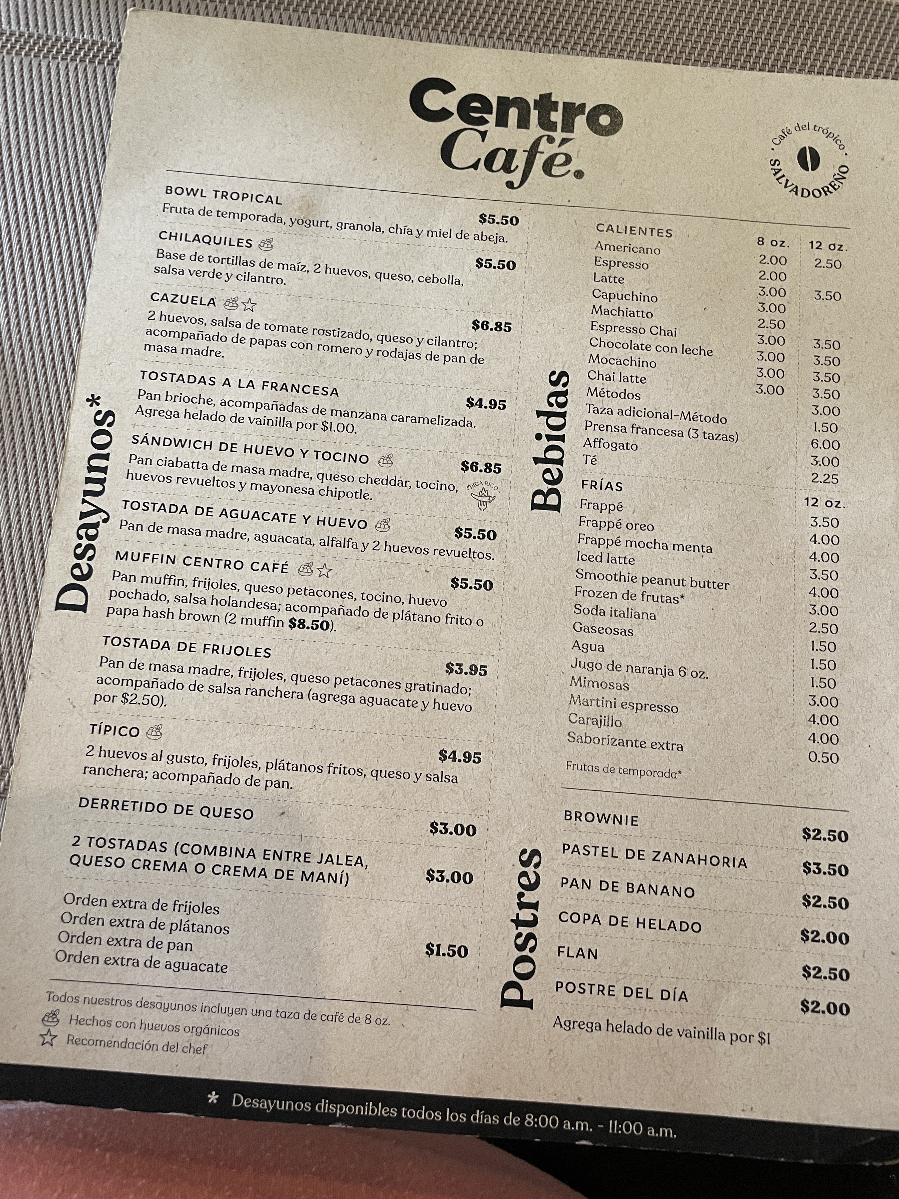 Centro café esta en Antiguo Cuscatlán, justo frente a la Hacienda de los Miranda. Está en plaza Mango y tiene espacio como en una terracita además de espacio con aire acondicionado adentro.