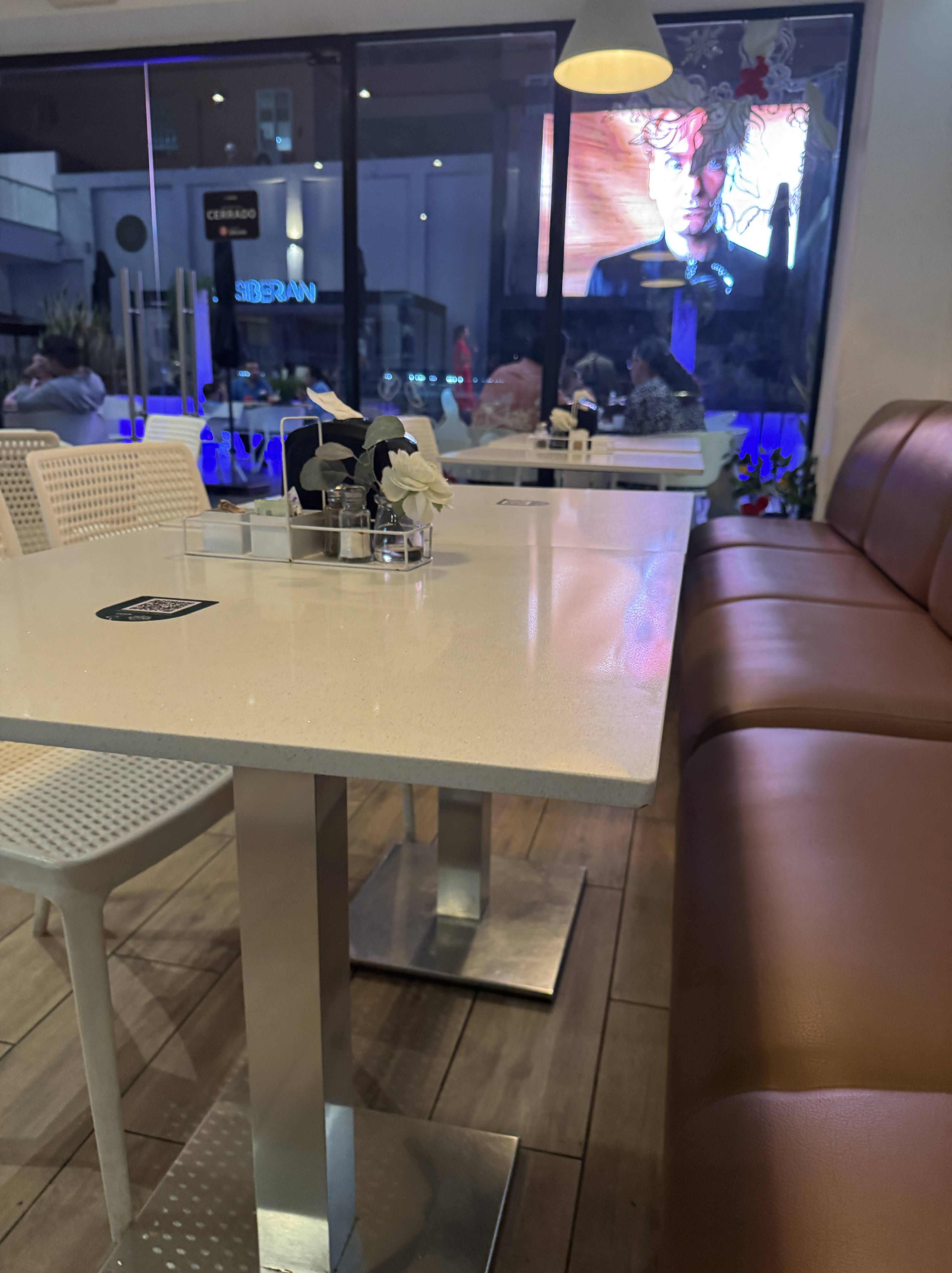 Las mesas no son incómodas, sin embargo, si no logras dos mesas, no podrías trabajar y tomar un café o trabajar y comer algo, ya que el espacio de una sola mesa es bastante limitado. Si vas con otra persona, sugiero que puedan tomar dos mesas y cada una a un lado para tener la parte complementaria del espacio libre de la otra mesa. Yo me senté en el silloncito que está pegado hacia la pared (porque siempre busco un espacio que de hacia la pared por privacidad de lo que sea que estoy haciendo)