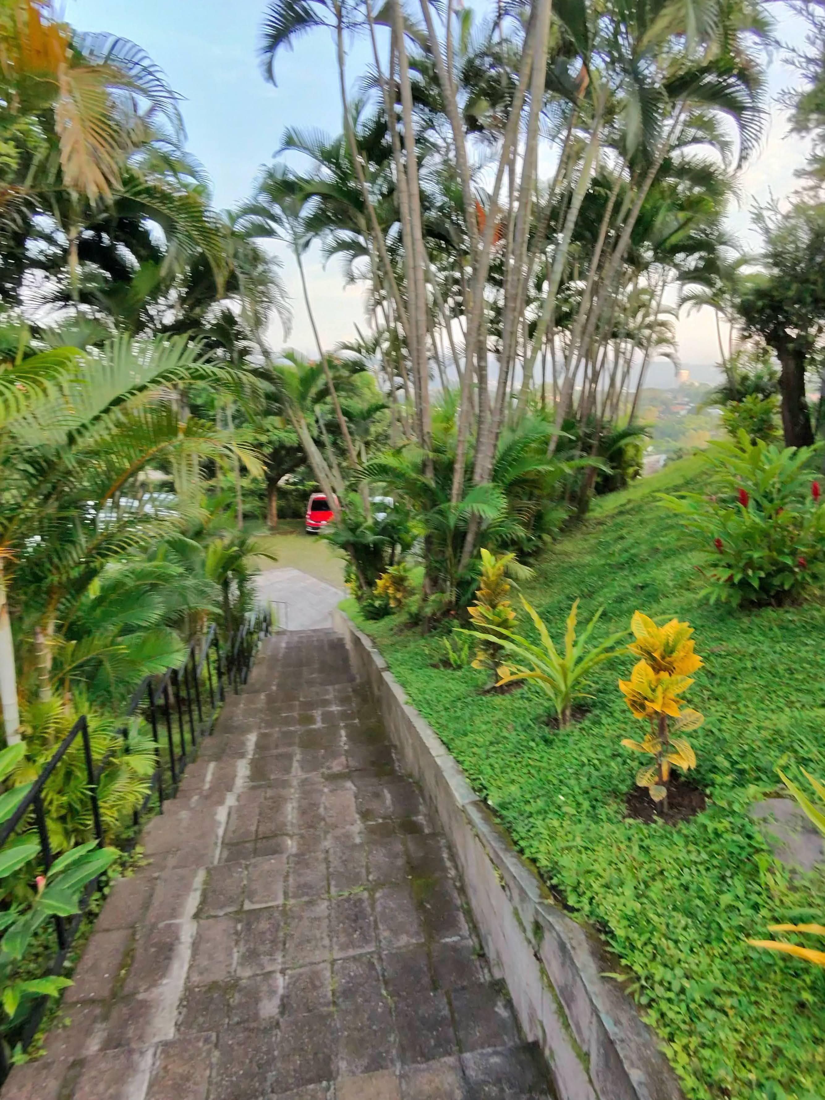 Tiene un parqueo interno como para 12 carros, si ese está lleno, también hay espacio en la calle, tiene una subida un poco empinada, pero se logra. Ojo, del parqueo a la zona del café hay aproximadamente unas 20 gradas y no tiene rampa, por lo que si viene alguien con asistencia para caminar o silla de ruedas, será algo complicado.
